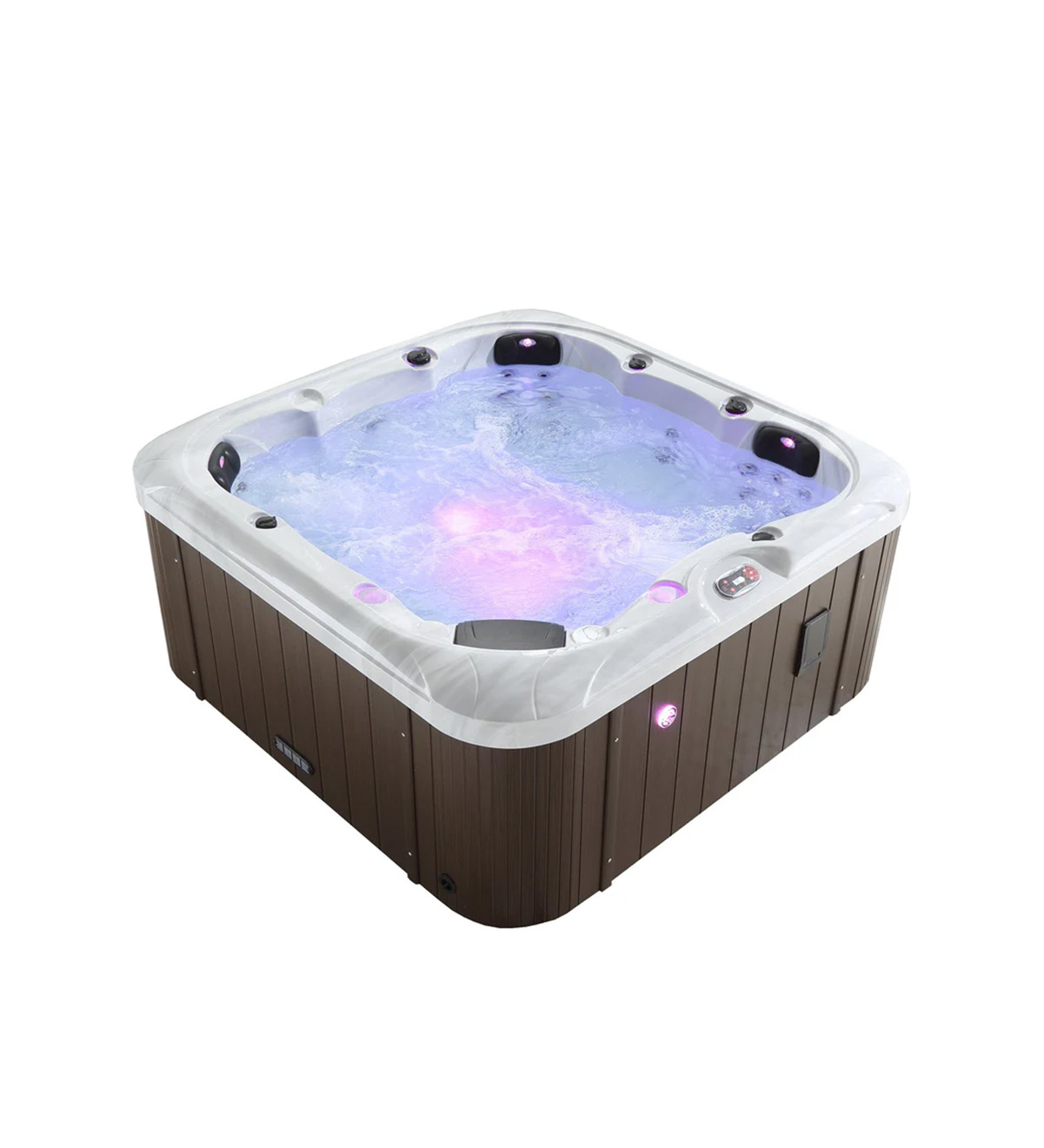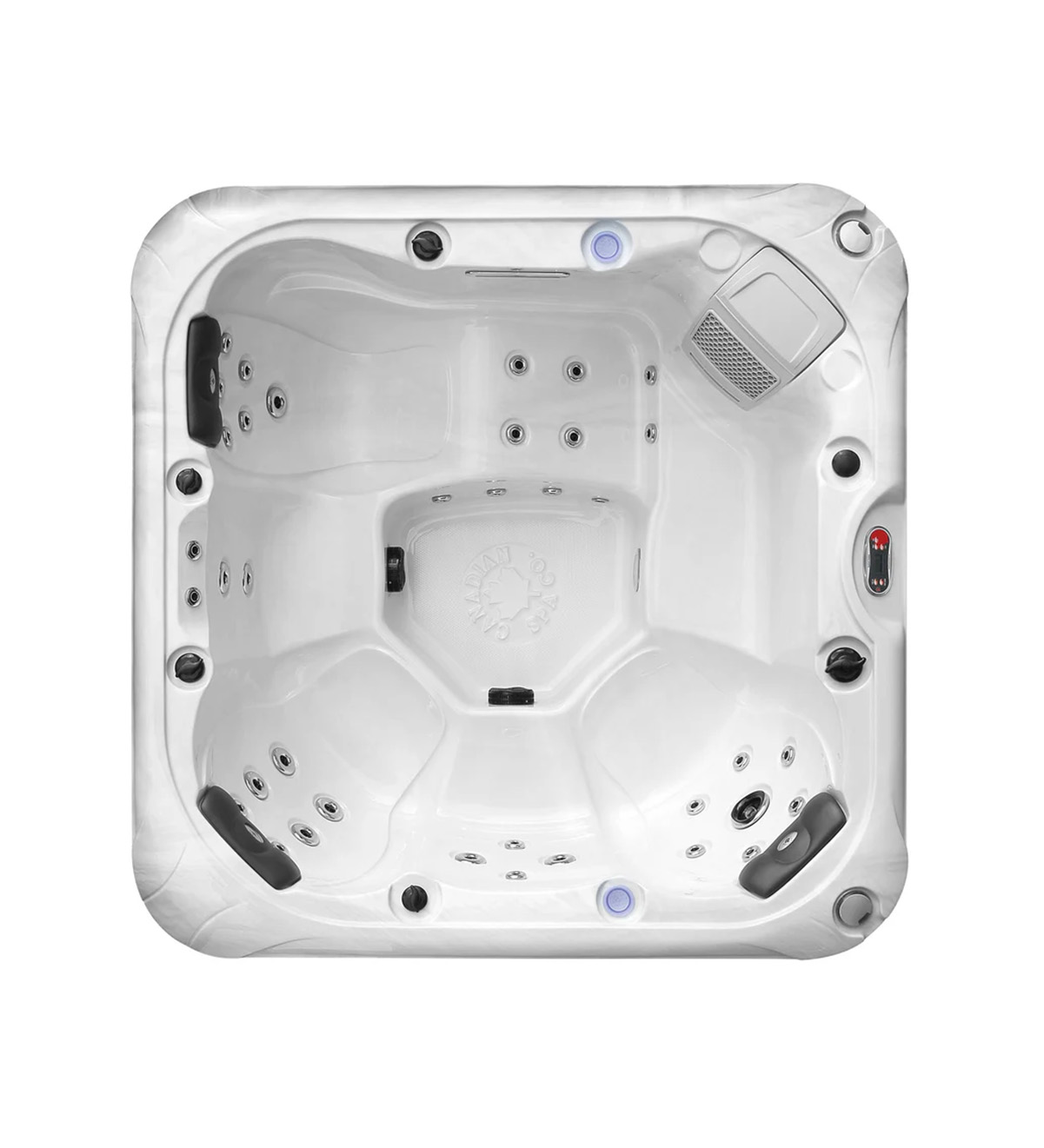 The spa features 33 adjustable hydrotherapy jets powered by a robust 5 HP dual-speed pump and a WhiteWater Jet Delivery System. Oversized pipework and air controls let you fine-tune the massage pressure for targeted muscle relief. The Aurora™ Premium LED Mood Lighting system offers full control over multicoloured lights, including perimeter LEDs, underwater lighting, and a backlit cascading waterfall. Enjoy your favourite music with the integrated Bluetooth audio system and waterproof speakers, while your device stays protected in a sealed compartment. The advanced digital control panel makes managing jets, temperature, and pumps effortless with a user-friendly interface. Canadian Spa’s Mountain Pure™ sanitation system, featuring 50ft² filtration and ozone purification, keeps your water clean and clear, while the bacteria-resistant acrylic shell adds another layer of protection. Energy efficiency is maximized with the ThermalSprings™ Heat Reclamation System, high-density closed-cell foam insulation, a 3kW Balboa heater with smart sensors, and a triple-layer insulated shell and cover. Designed to endure extreme climates, the durable acrylic shell ensures year-round outdoor performance in any weather.