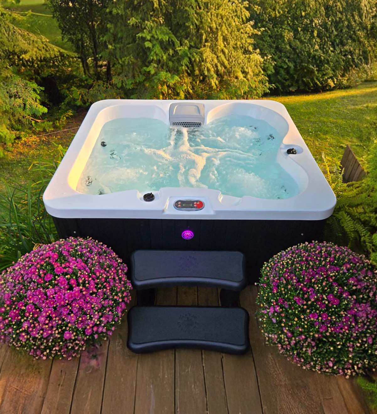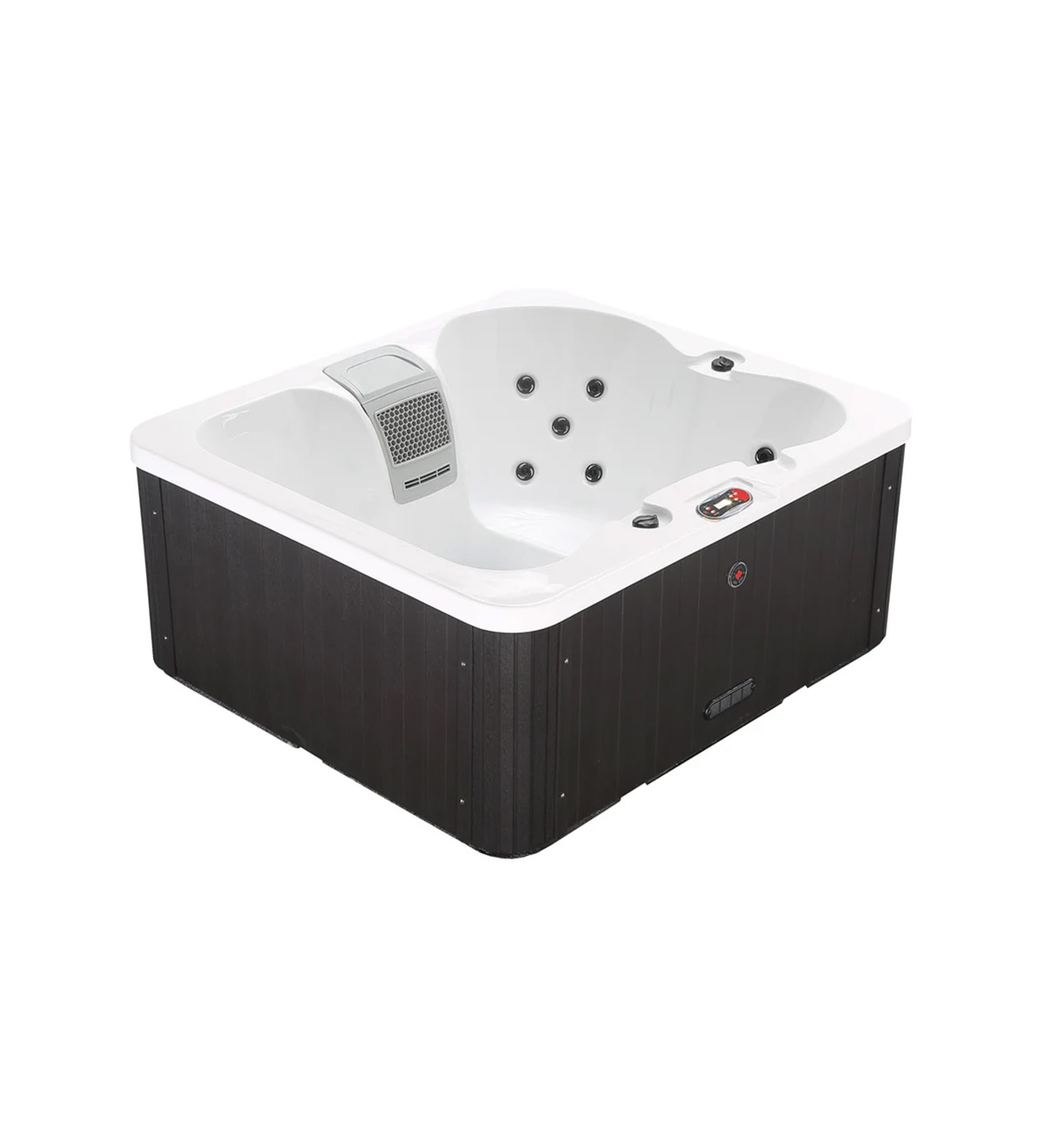 Installation is hassle-free—just plug it into a standard socket and enjoy. The Manitoba includes a 50ft² filtration system and built-in ozone generator for clean, crystal-clear water. Multi-colored LED mood lighting enhances the ambiance, while intuitive digital controls make adjusting settings easy and reliable.